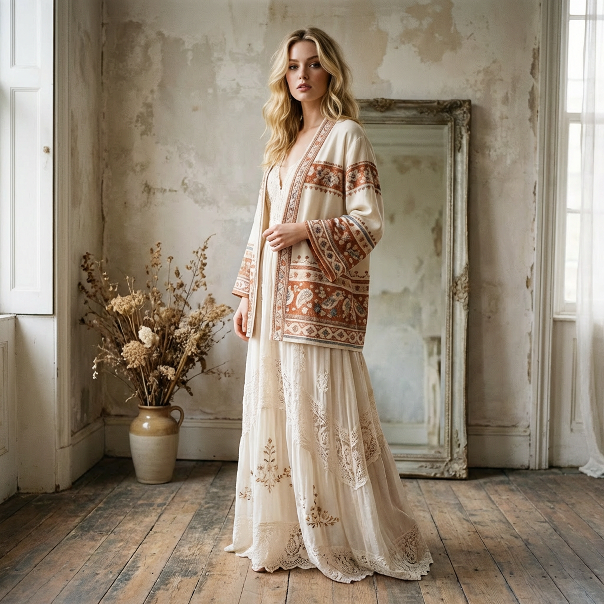 - Vintage ethnic jacquard trim for a photogenic, statement look